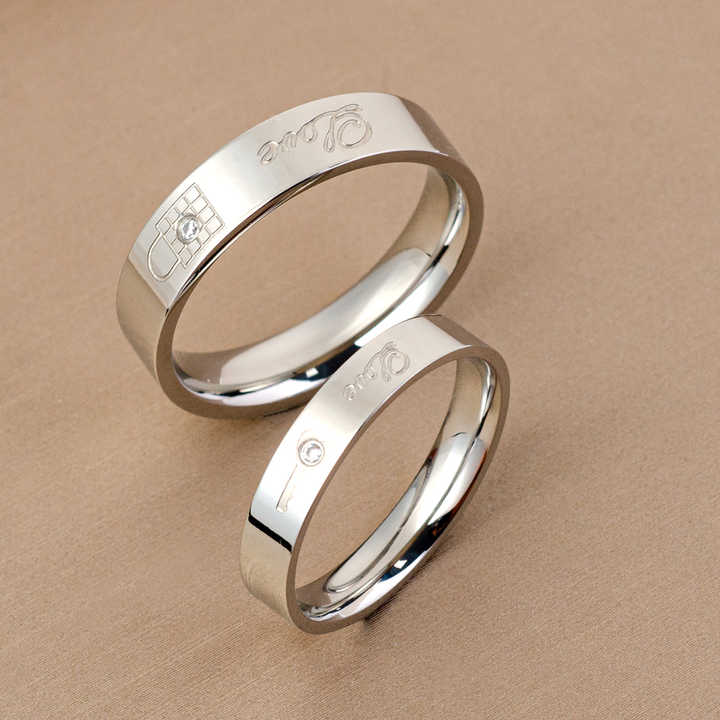 Romantic Engraved Love Stainless Steel Couple Rings For Weddings and Engagement