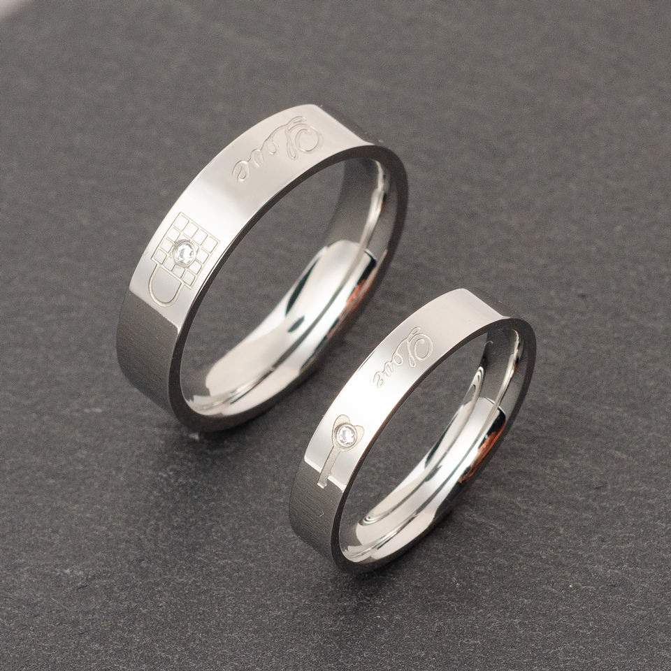 Romantic Engraved Love Stainless Steel Couple Rings for Weddings and Engagement