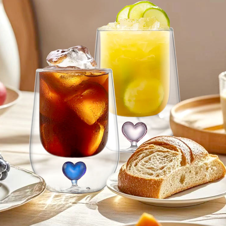 Romantico cuore bere vetro resistente al calore riutilizzabile neve doppia parete bicchieri da caffè tazza da tè per succo Bervage Cola e caffè