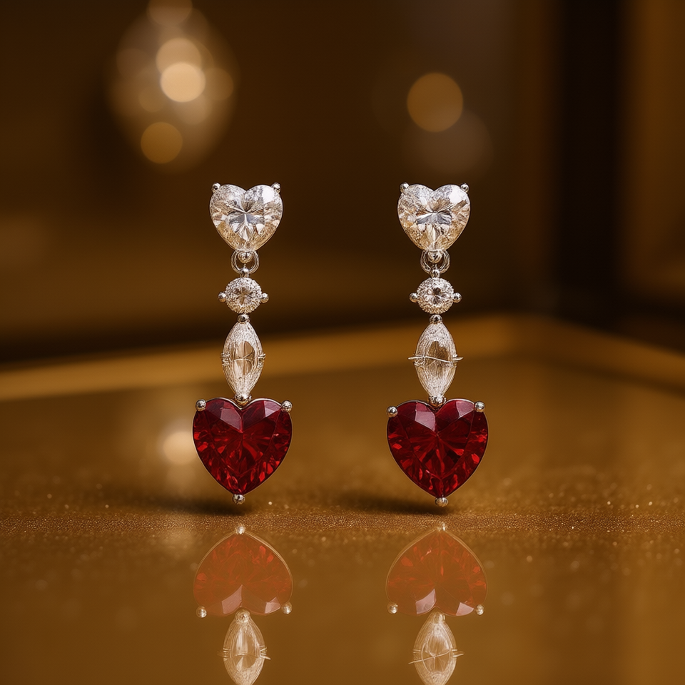 Romantic Heart Drop Earrings 925 Silver Ruby Crystal Women's Wedding Jewelry Claw Setting Red Heart Shape