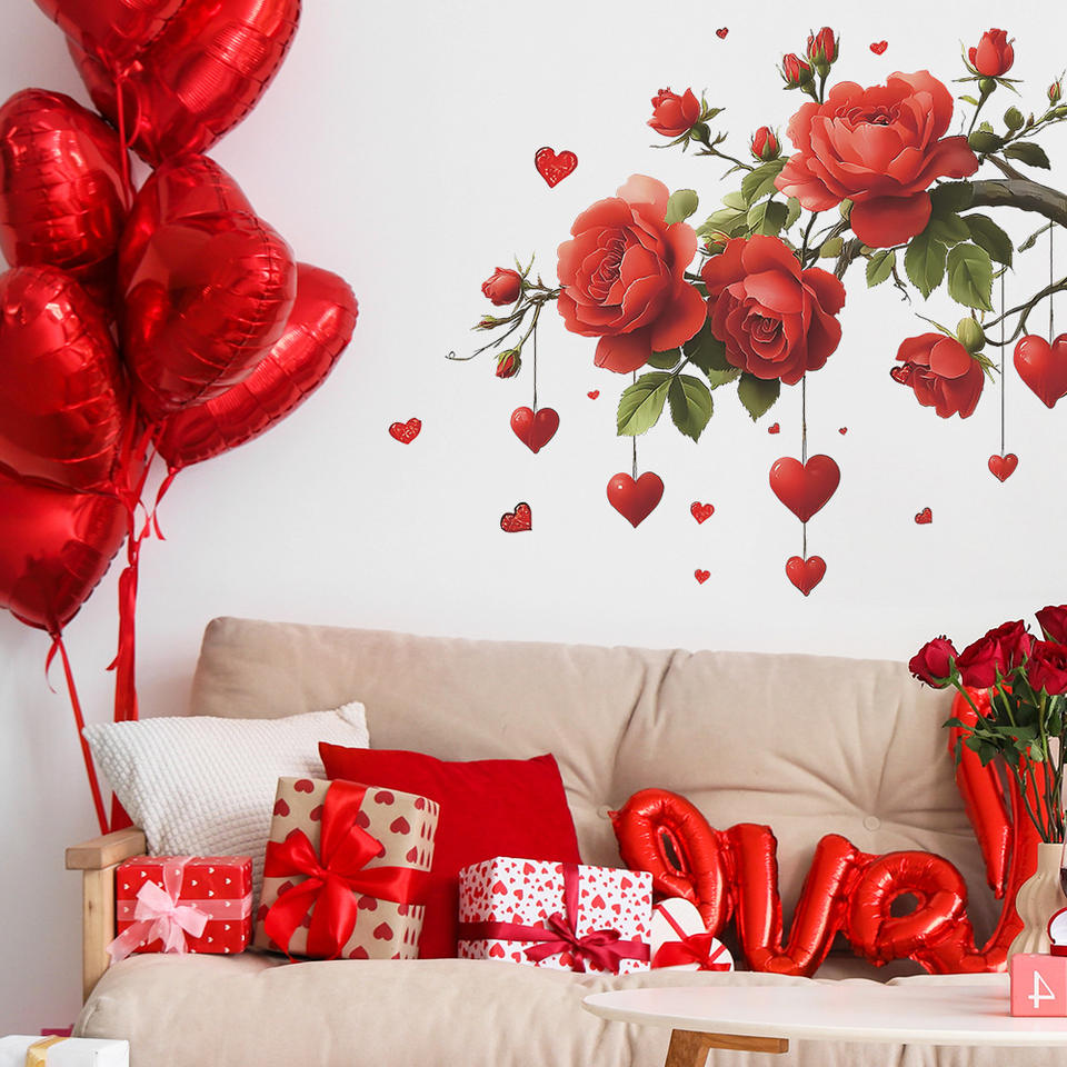 Romantic Heart Red Rose Tree Wall Stickers Removable Vinyl Large Wall Stickers for Living Room Bedrooms