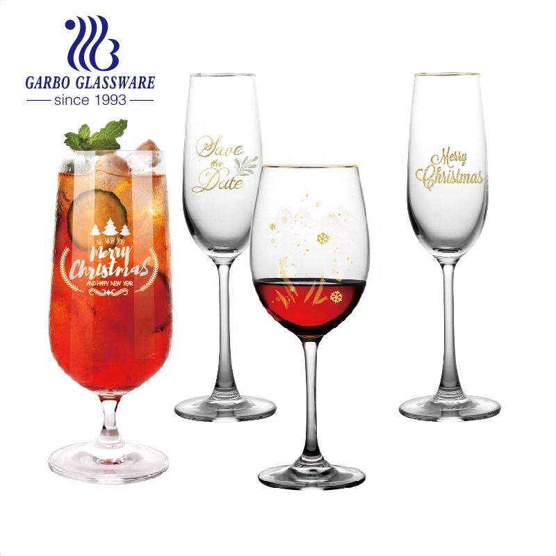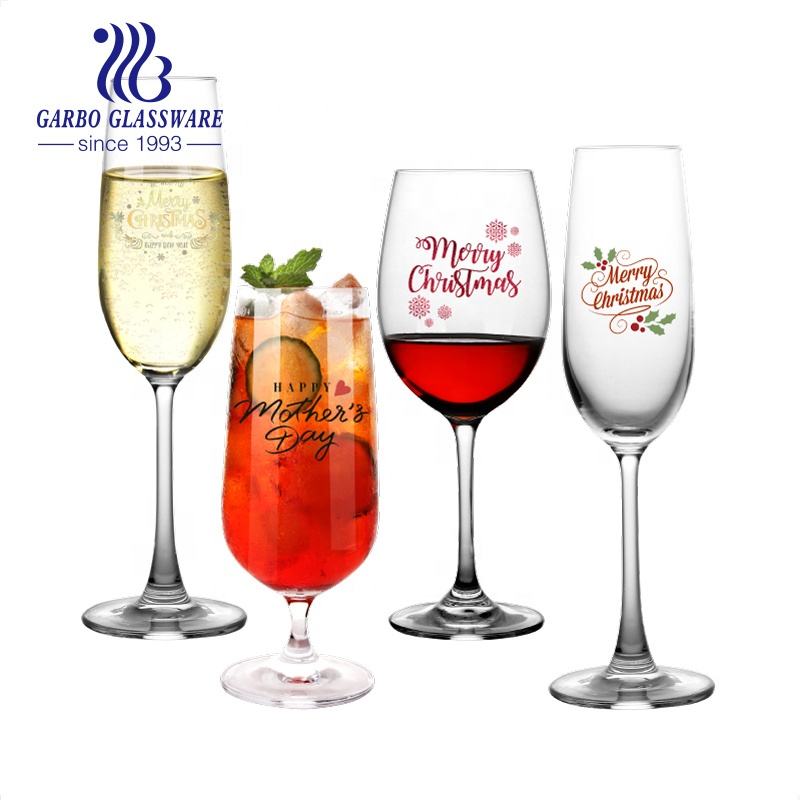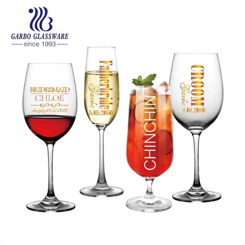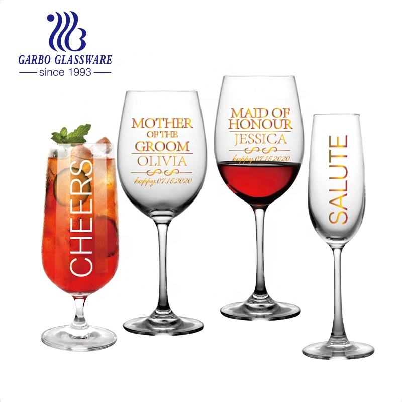 Romantico Mr Mrs printing stem crystal glass per regali di anniversario confezione personalizzata bicchieri da champagne per vino rosso e bianco