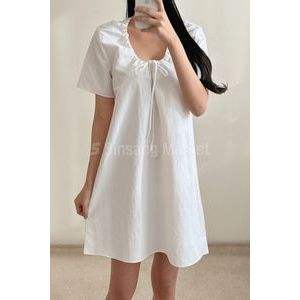 Mini abito romantico a maniche corte con tracolla per il Look da vacanza