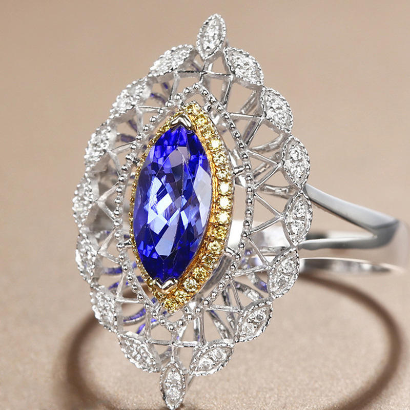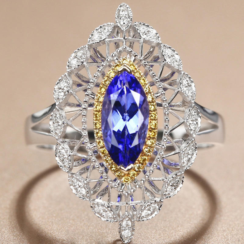 Anelli Romantici in Acciaio Inossidabile con Gemme e Zirconi, Placcatura in Rodio e Oro, Gioielli da Matrimonio Certificati IGI