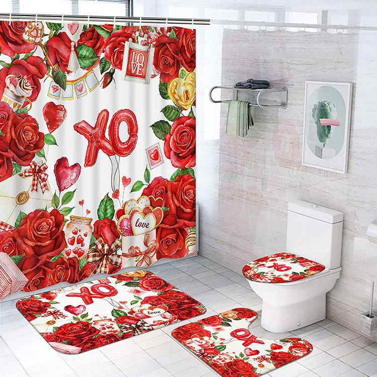 Regalo romantico di san valentino 72x72 pollici decorazione per la casa Design personalizzato stampa tenda rossa palloncino doccia