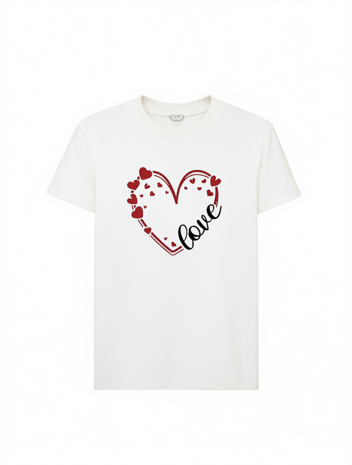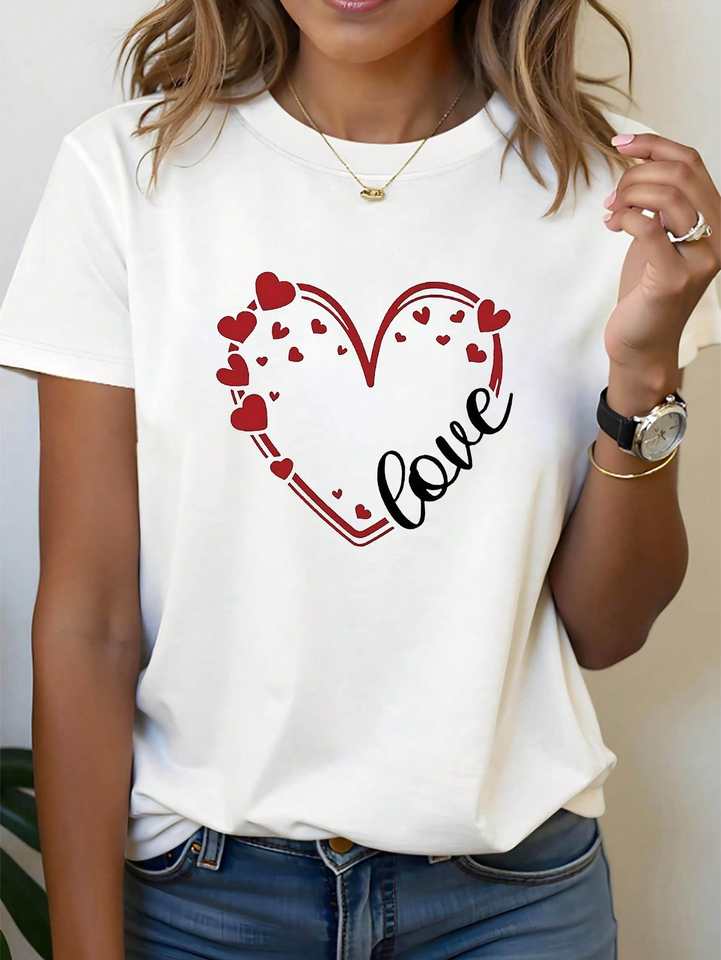 Romantic Valentine's Day Gift Heart Love Print Plus Size Women's Casual Round Neck T-Shirt Spring Summer 100% Cotton