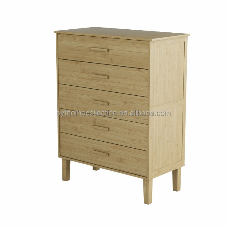 Room Glow SYT Heavy Duty Bamboo Drawer Chest for TV Console Zone Smooth Pull Storage Cabinet for Lounge Corner
