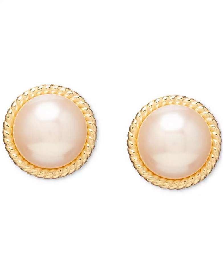 Orecchini a perno con perle Mabe d'acqua dolce coltivate a bordo cordato (10mm) in argento sterling placcato oro 18k | Macy's