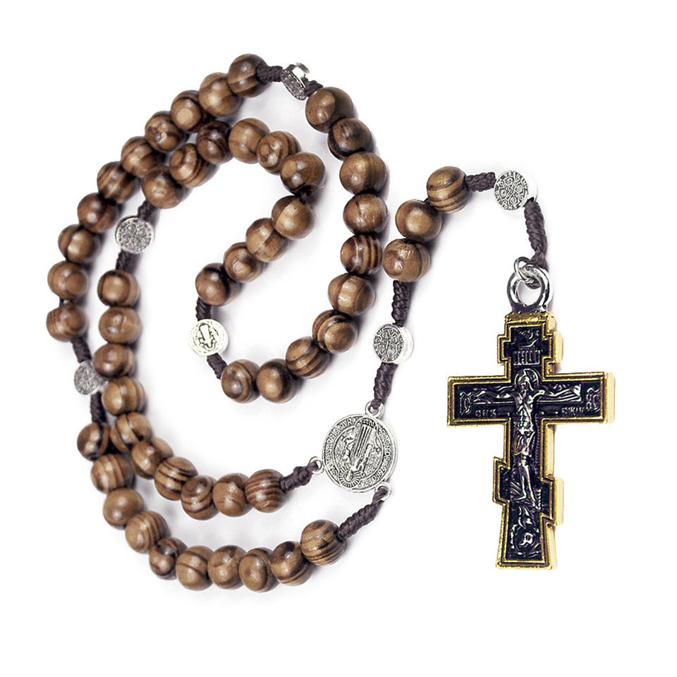 Rope Woven Rosaries 10mm Wood Beads Handmade Our Father Cross Crucifix Pendant Necklace Rosary for Men