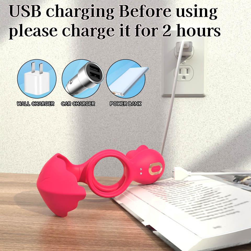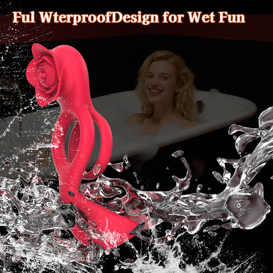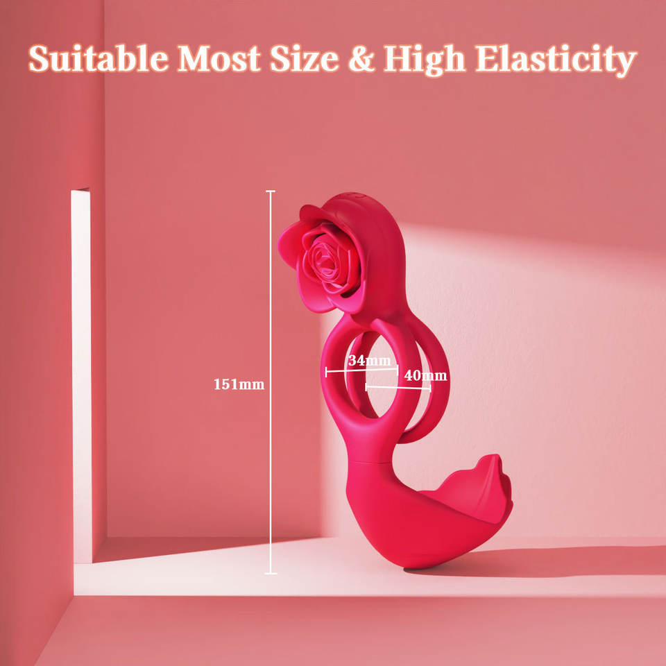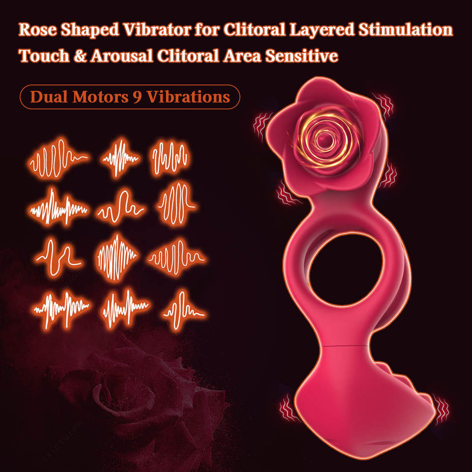 Anello Vibrante per Pene Rose con Doppi Motori e 9 Vibrazioni, Giocattolo Sessuale per Adulti e Coppie