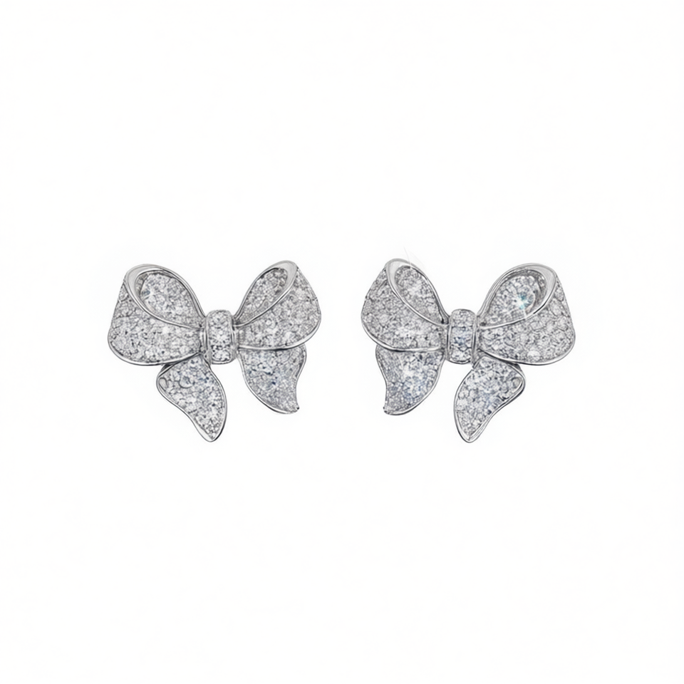 Rose Gold Bowknot Stud Earrings With Crystal Rhinestones For Women Party Cute Fashion Jewelry Alloy Micro Insert