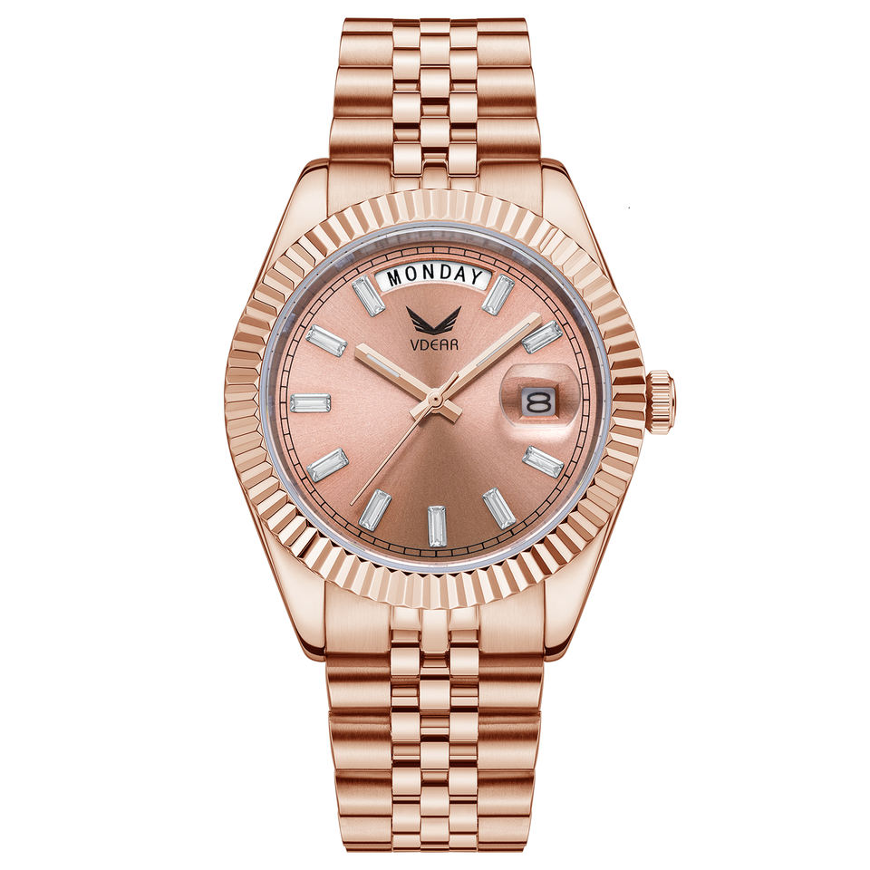 Orologio al quarzo con Design personalizzato di colore oro rosa di lusso con il tuo logo orologio Oem