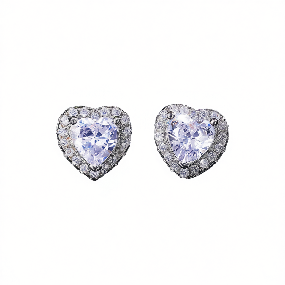 Rose Gold Heart Cut Zircon Stud Earrings Claw Setting Women's Romantic Fashion Jewelry Gift