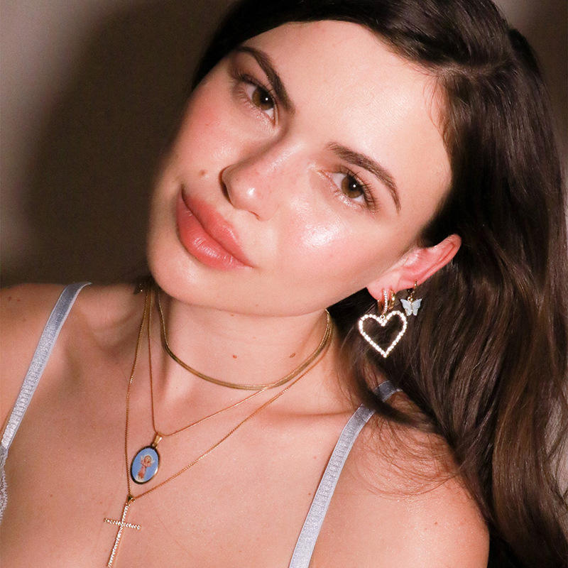 Orecchini pendenti a forma di cuore in oro rosa con strass di cristallo incorniciati per donna, romantici da indossare tutti i giorni