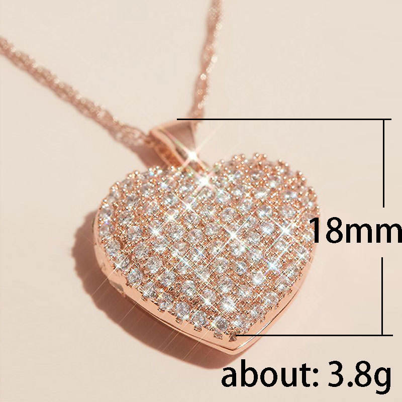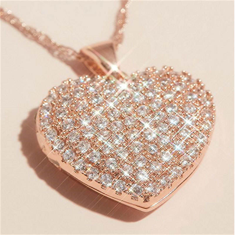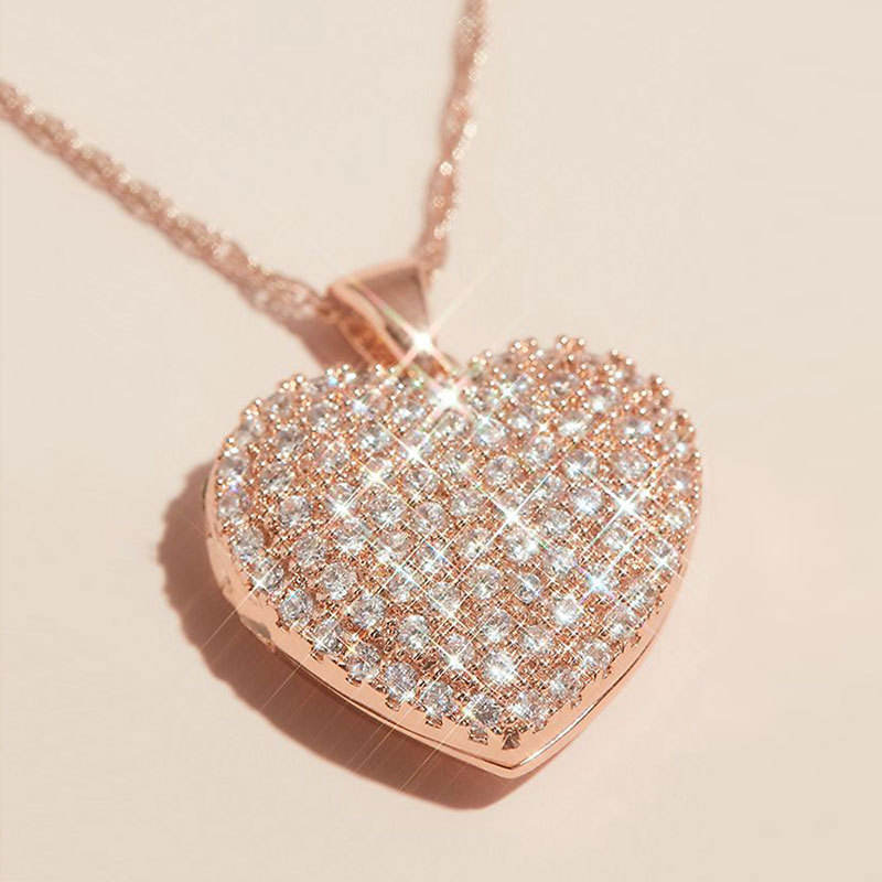 Ciondolo a Cuore in Oro Rosa con Cristalli e Strass, Micro Incastonatura, Regalo Romantico per Donne