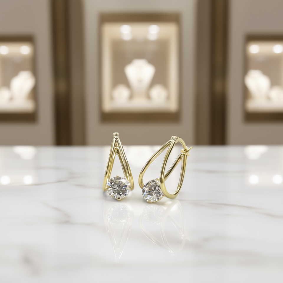 Orecchini a Cerchio in Oro Rosa con Zirconi Rotondi Incastonati, Design Geometrico Minimalista per Uso Quotidiano Femminile, Placcati in Oro 18K