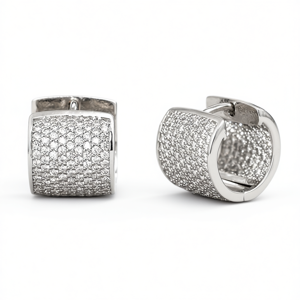 Orecchini a Cerchio in Oro Rosa con Cristalli Geometrici Micro Pavé, Gioielli Unisex Classici e alla Moda per Feste