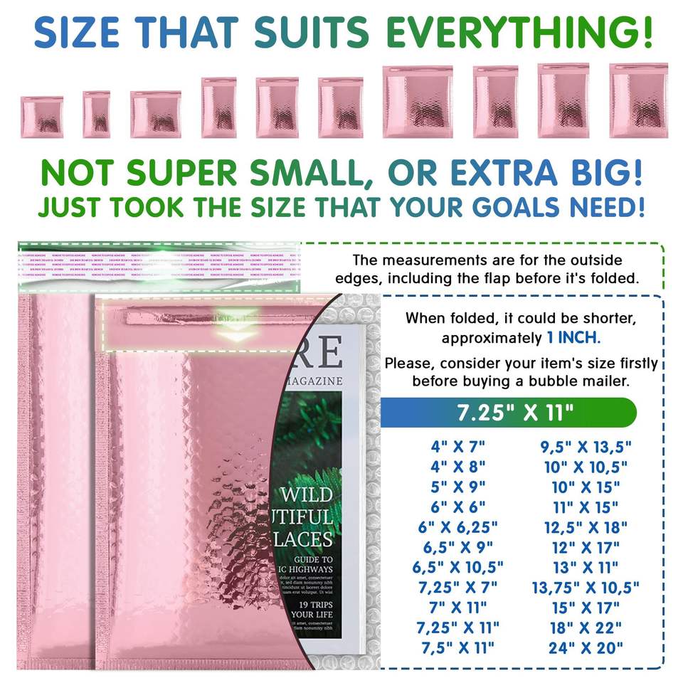 Bollettini a bolle in oro rosa metallizzato 200 7.25X11 pollici Pack buste imbottite impermeabili per oggetti fragili sacchetti di lamina luminosa