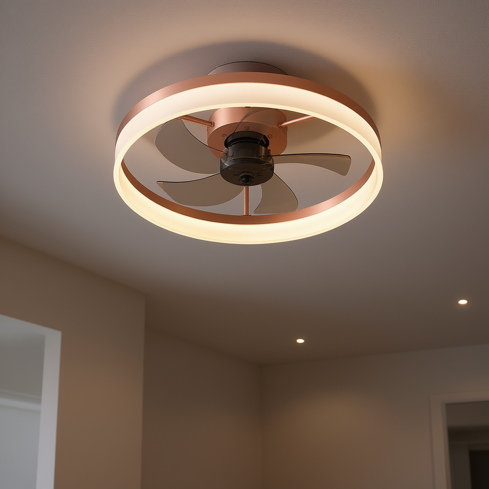 Modern LED Ceiling Fan Rose Gold 3 Blades DC Motor Dimmable Flush Mount Remote Control