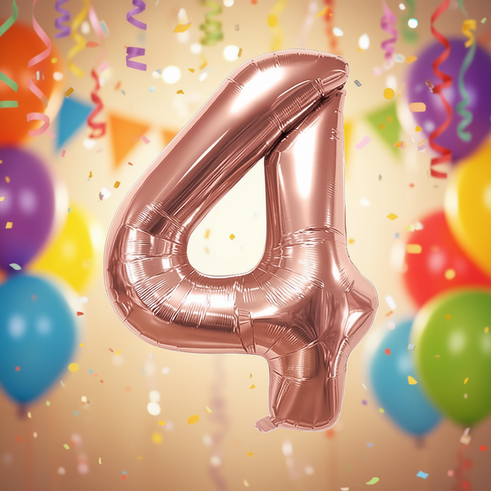 Palloncino Numero 4 in Oro Rosa 80cm, Decorazione per Feste in Foil