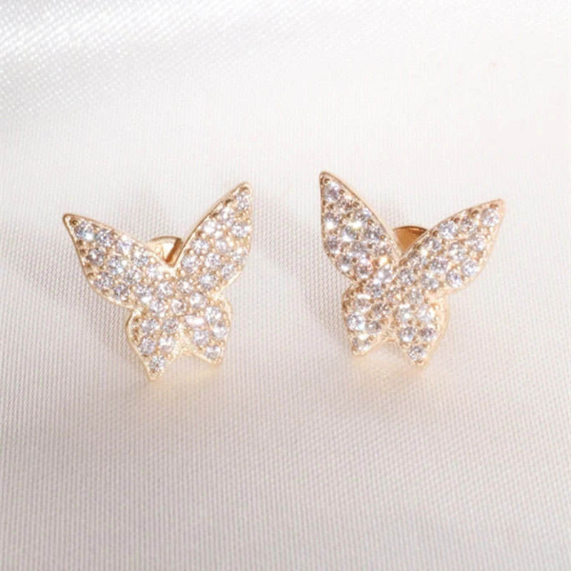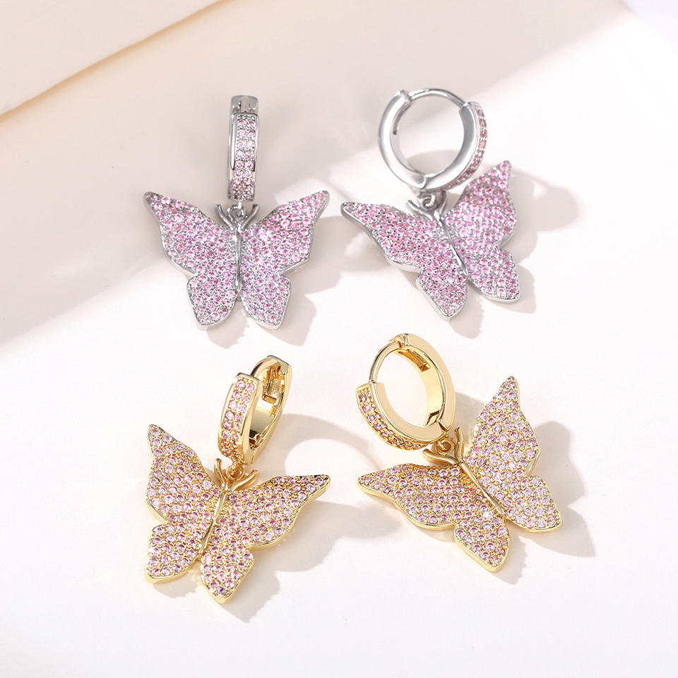 Orecchini Pendenti a Farfalla Placcati in Oro Rosa con Cristallo Rosa, Gioielli da Donna in Argento 925 per Uso Quotidiano