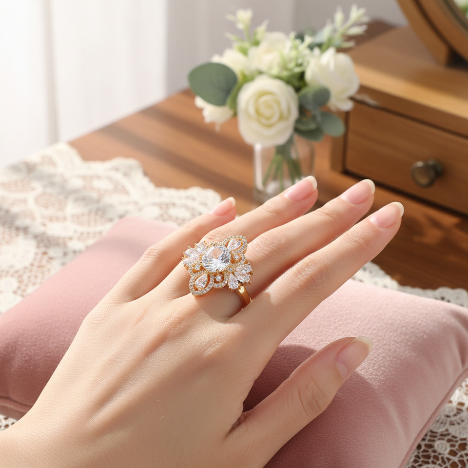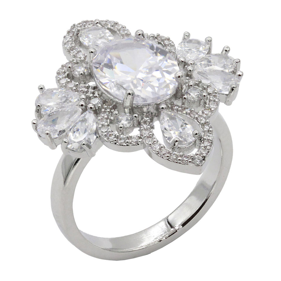Anelli moda a grappolo placcato oro rosa intarsio CZ regolabile con rodio e placcatura 18K taglia unica
