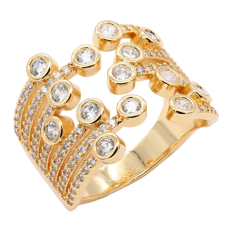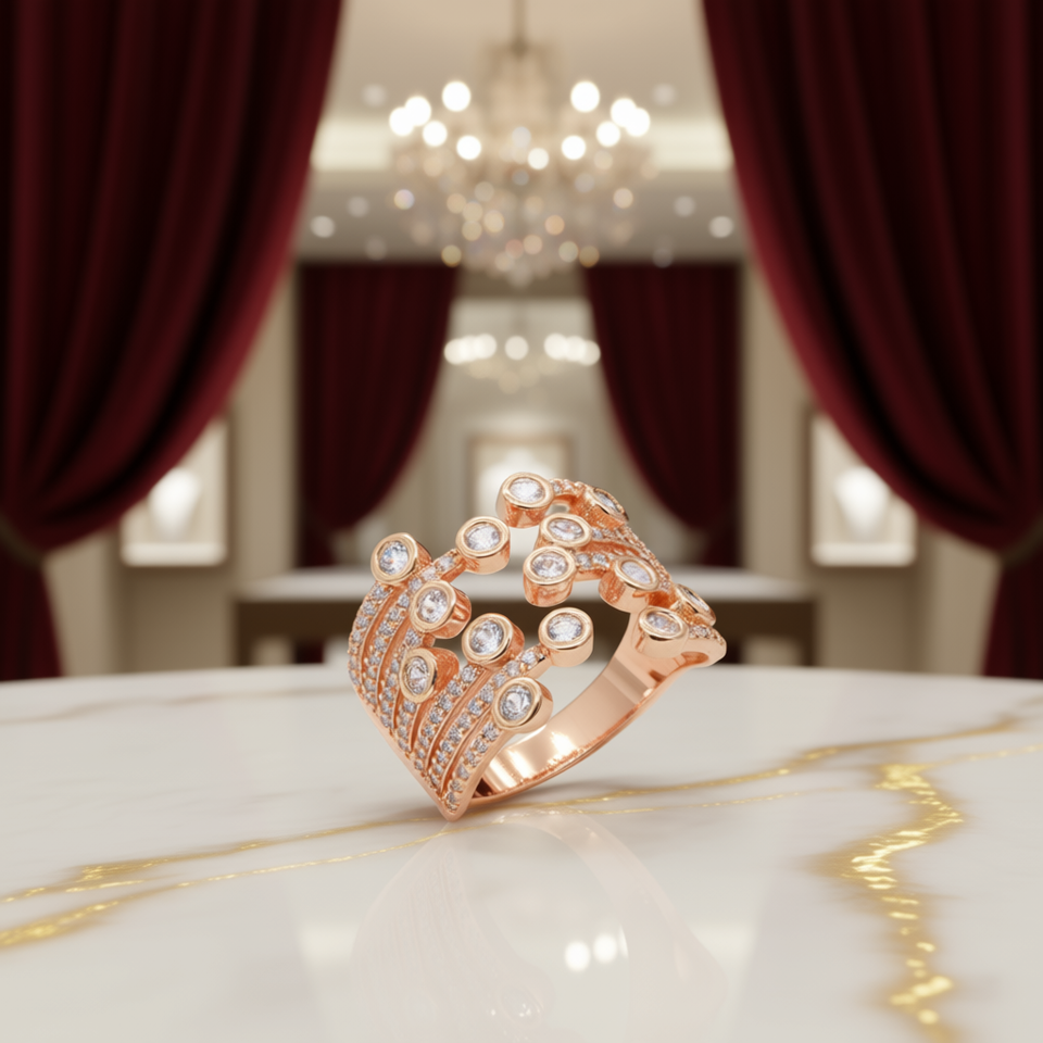 Anello a Grappolo Placcato in Oro Rosa con Incastonatura di Zirconi, Gioiello Regolabile alla Moda, Taglia Unica Unisex per Uso Quotidiano e Feste