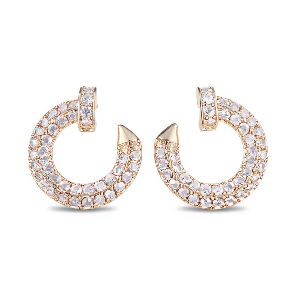 Orecchini a Cerchio Placcati in Oro Rosa con Cristalli e Strass, Design Geometrico, Trendy per Uso Quotidiano, in Lega di Zinco con Incastonatura a Canale