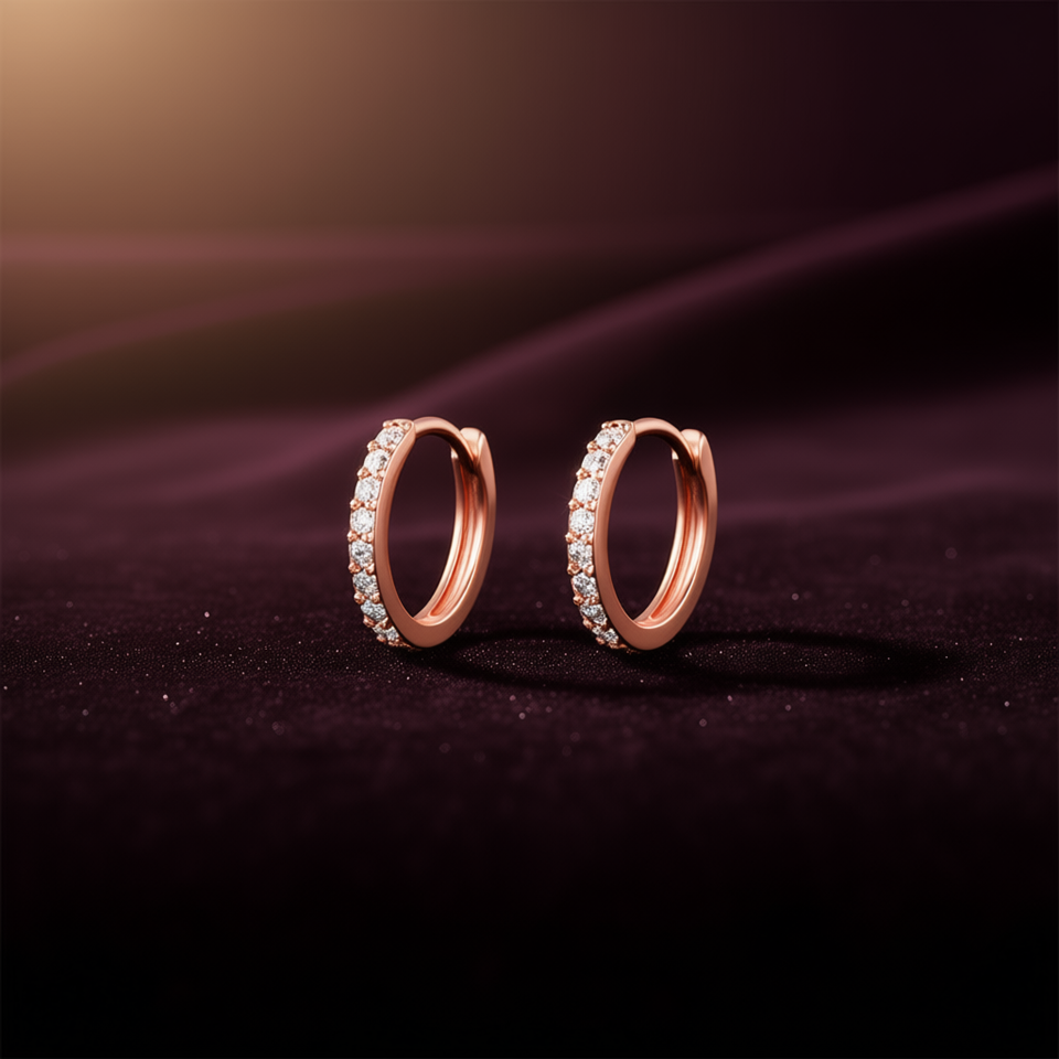 Orecchini a Cerchio Placcati in Oro Rosa con Cristalli e Strass, Design Minimalista, Incastonatura a Canale, Taglio Brillante, Diametro Interno 9mm, per Donna