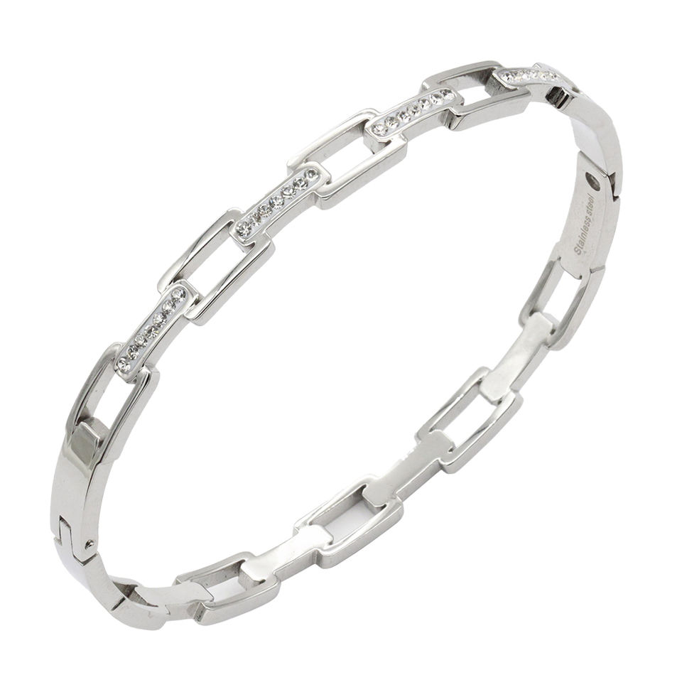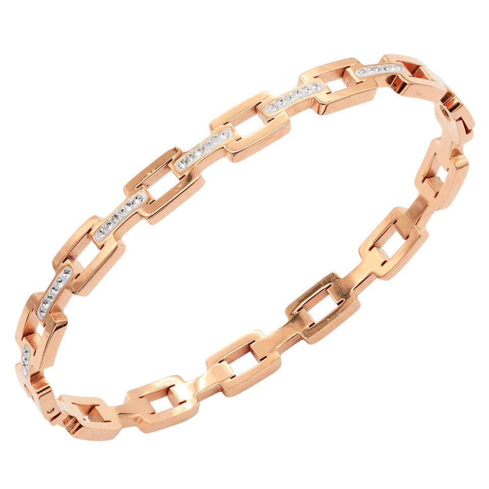 Bracciale rigido in acciaio inossidabile placcato oro rosa con pietra CZ, elegante gioiello in cristallo per donna, design a catena.