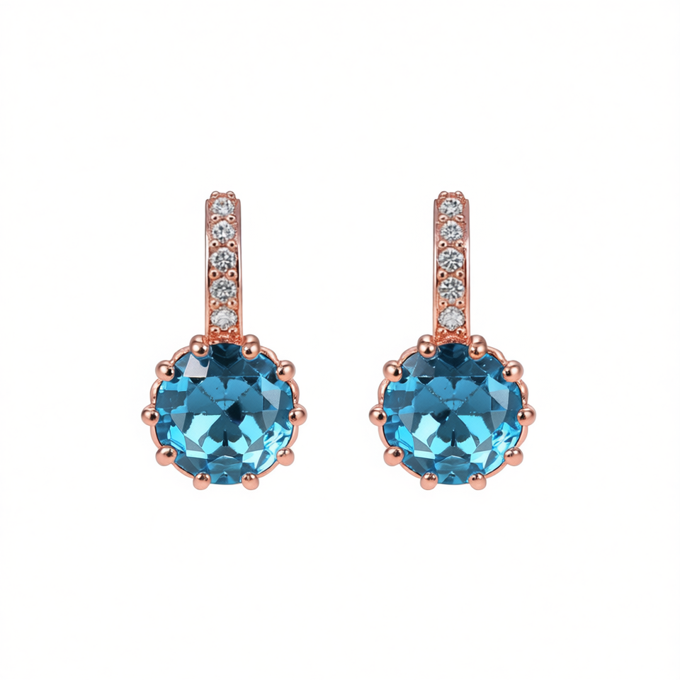 Rose Gold Plated Topaz Drop Earrings Women's Romantic Party Jewelry Alloy Round Brilliant Cut Claw Setting Fashion Dangle