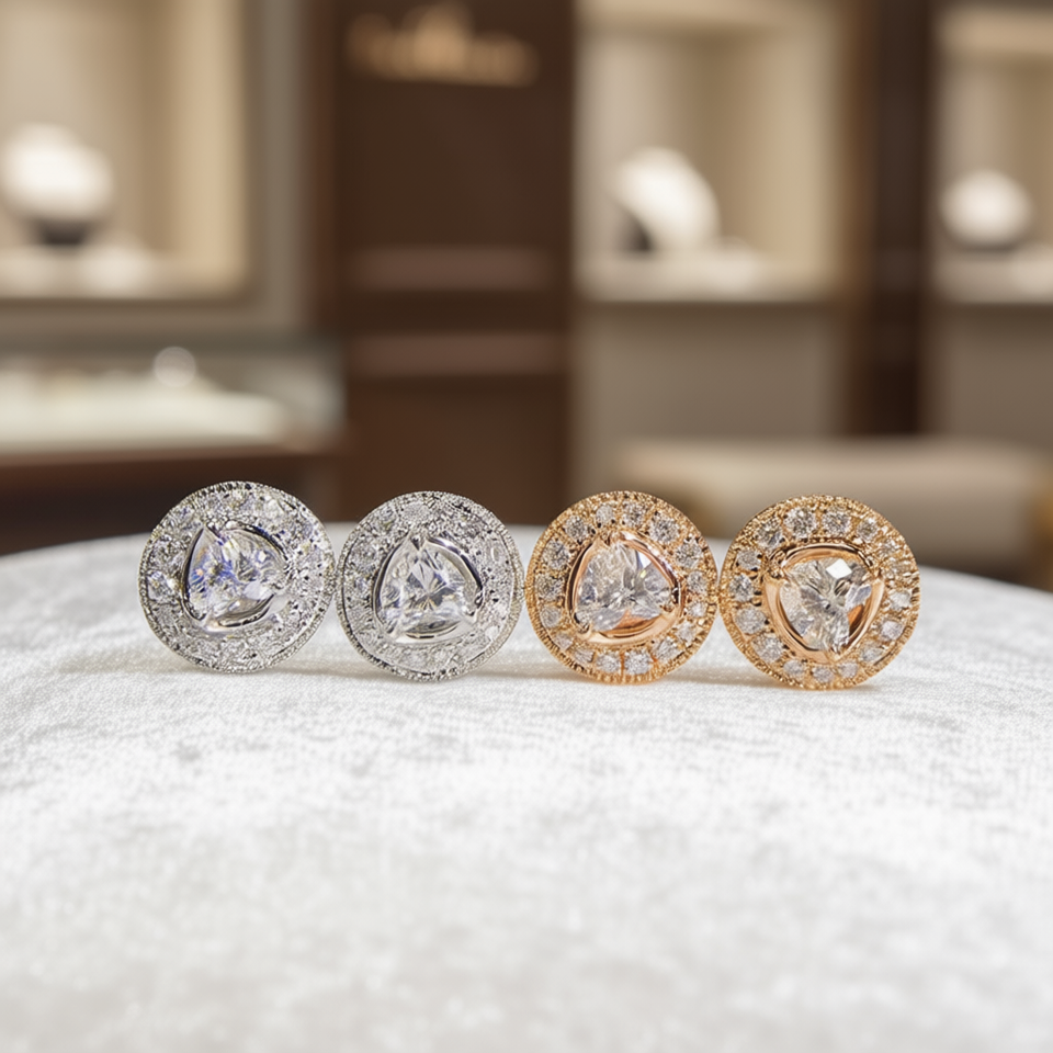 Rose Gold Plated Trillion Cut Zircon Stud Earrings For Women Wedding Classic Fashion Jewelry Alloy Earring Set