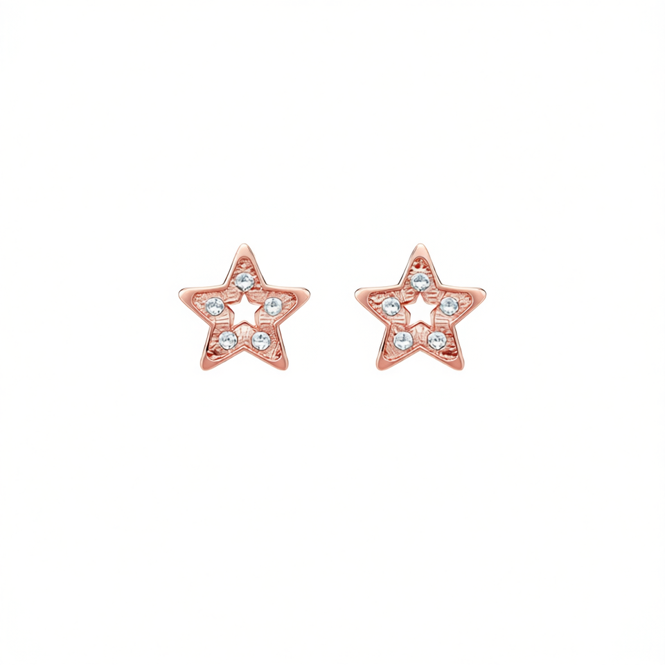 Orecchini a stella color oro rosa con strass di cristallo, montatura a punta, in lega di zinco, gioielli unisex alla moda E313