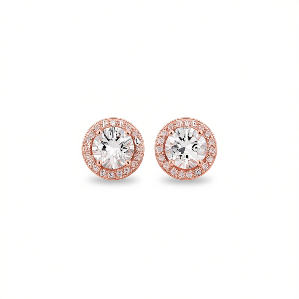 Orecchini a bottone in oro rosa con cristalli rotondi e strass, gioielli classici da donna alla moda E269