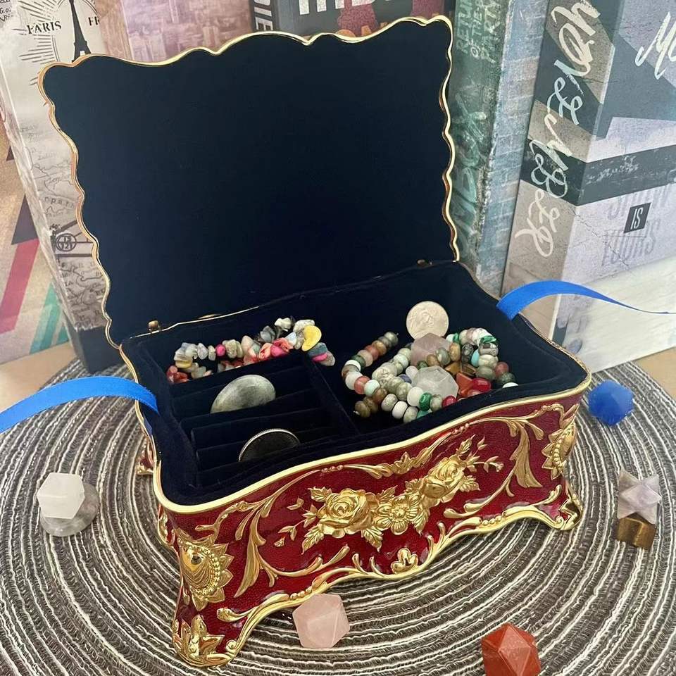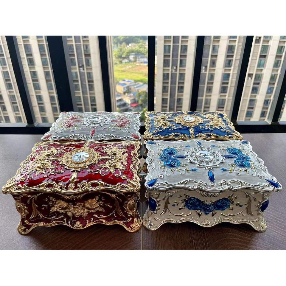 Cofanetto Portagioie in Metallo Stile Pastorale Rosa, Vassoio Vintage per Gioielli e Gemme, Contenitore per Tesori e Souvenir, Scatola Regalo per Ragazze
