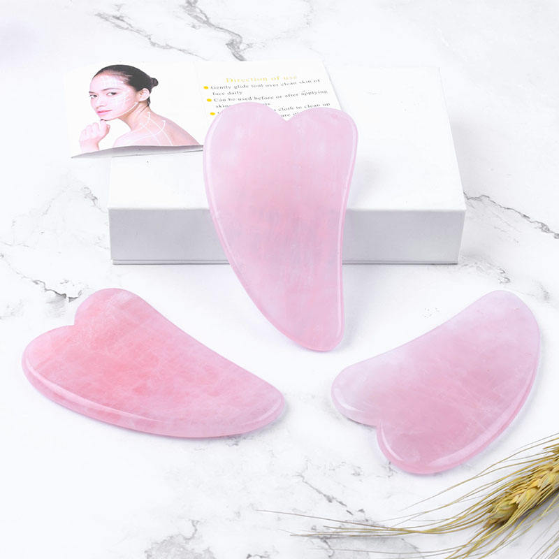 Nome del prodotto:Quarzo rosa Guasha cura della pelle viso giada raschiatura massaggio Gua Sha