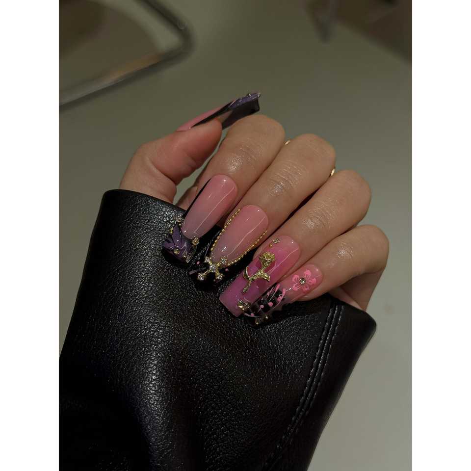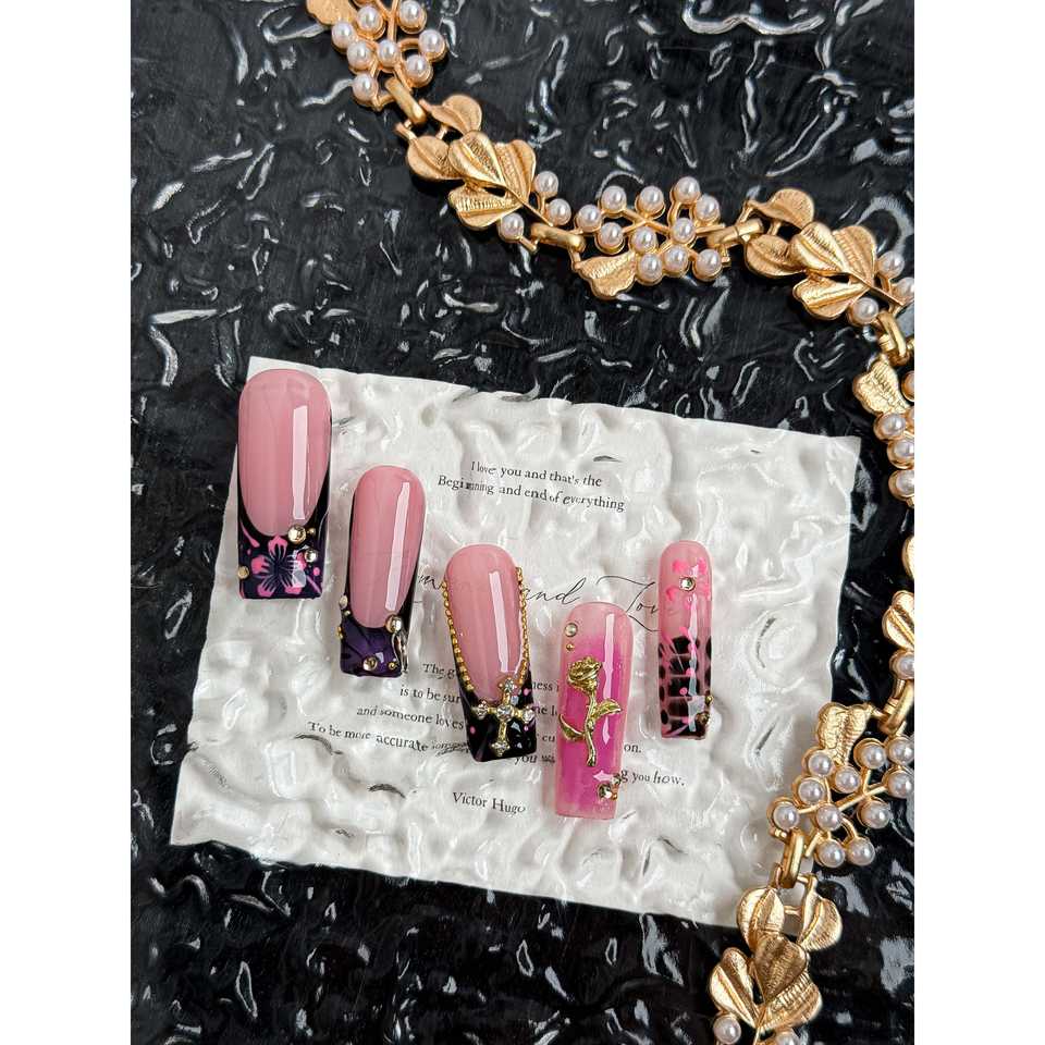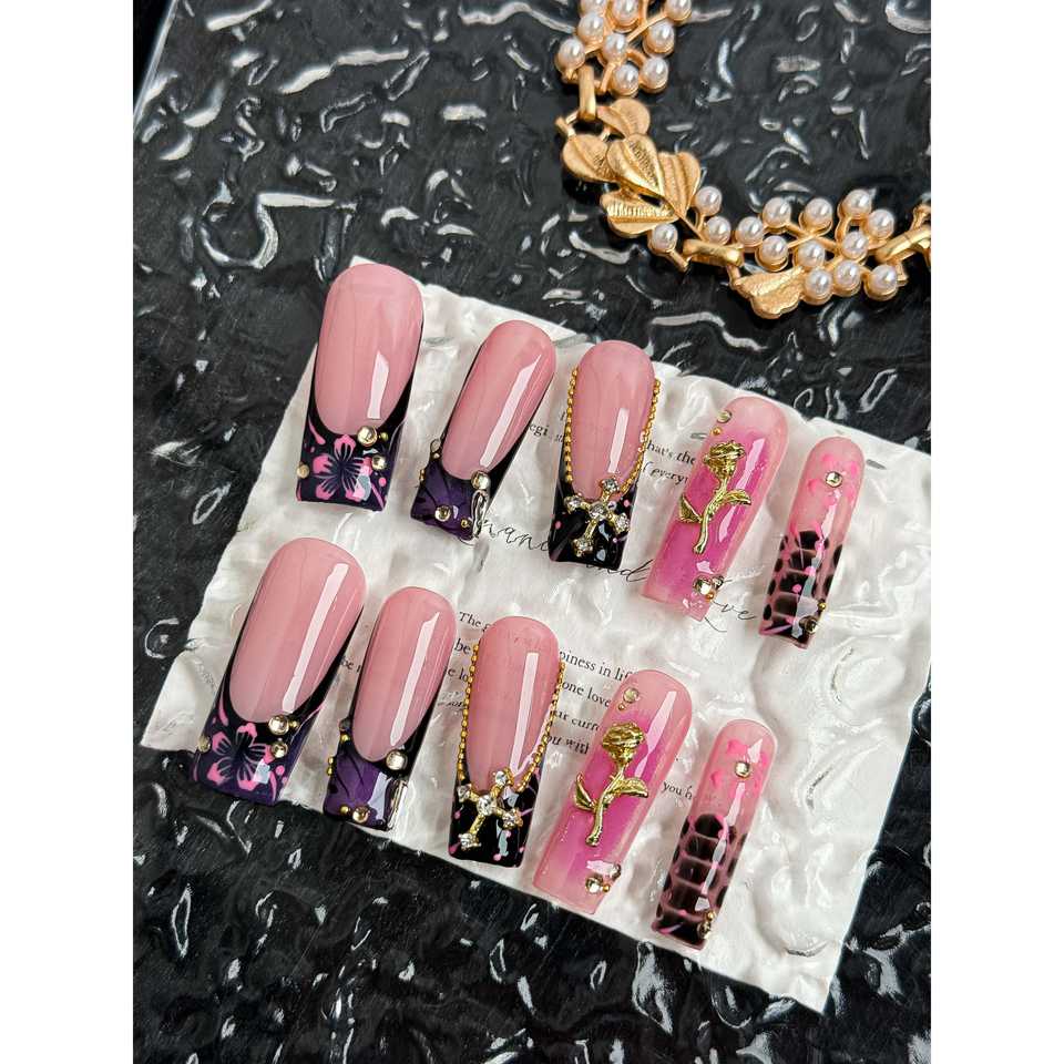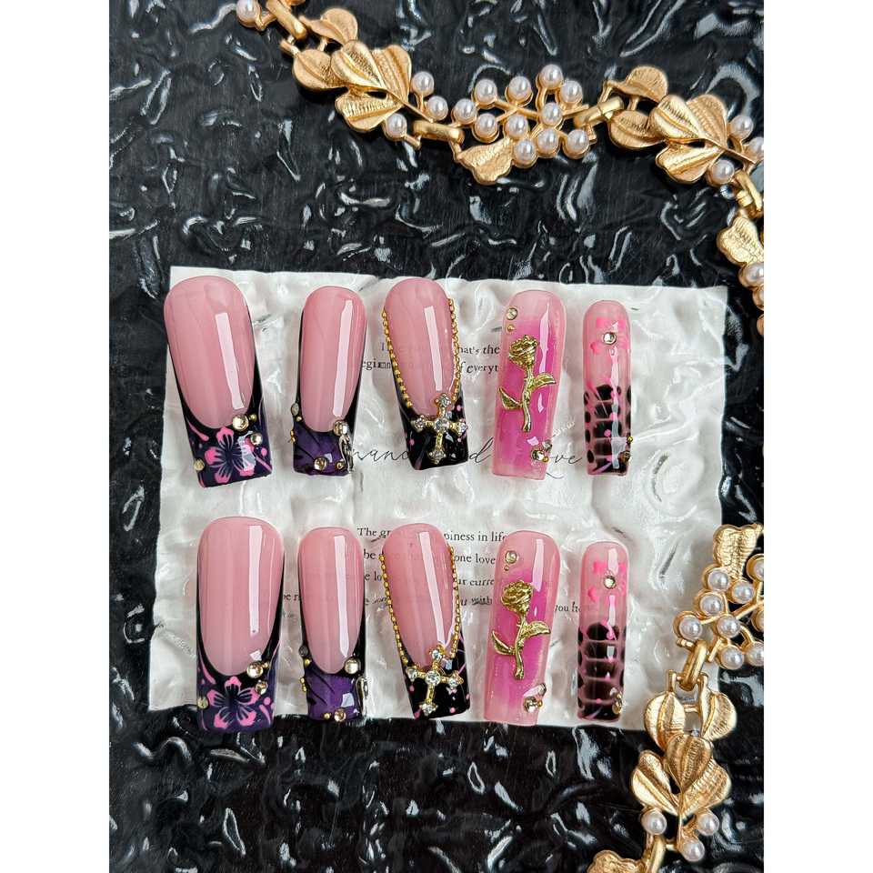 Rose Reign Press-On Nail Art: Design Elegante per Donne Raffinate