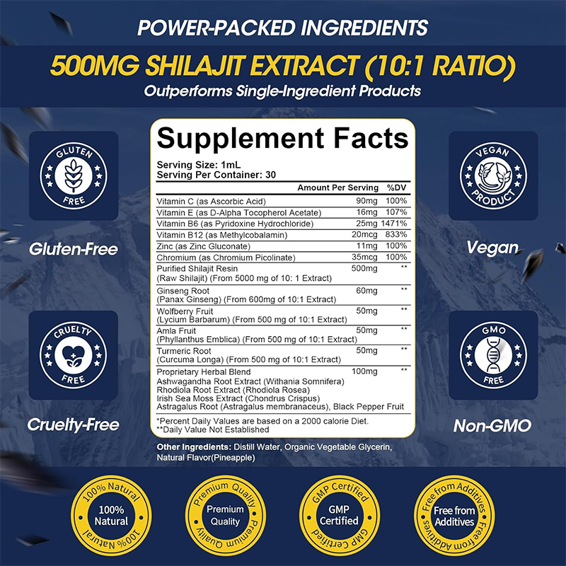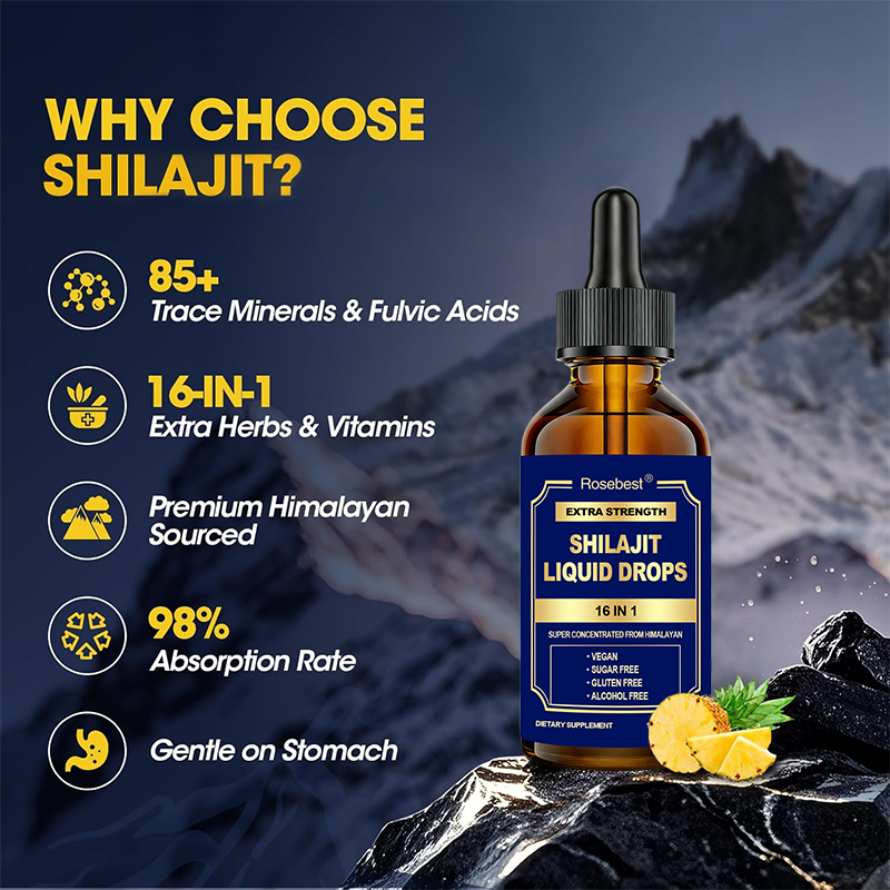 Rosebest Formula Personalizzata di Estratto Naturale di Erbe, 500mg di Resina di Shilajit in Gocce Liquide, Integratore Energetico per Uomini e Donne