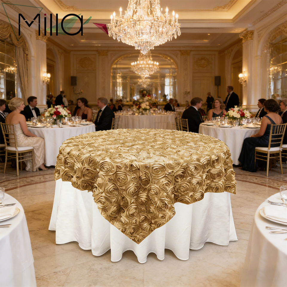 Tovaglia in Raso con Rosette, Copritavolo per Torte Nuziali