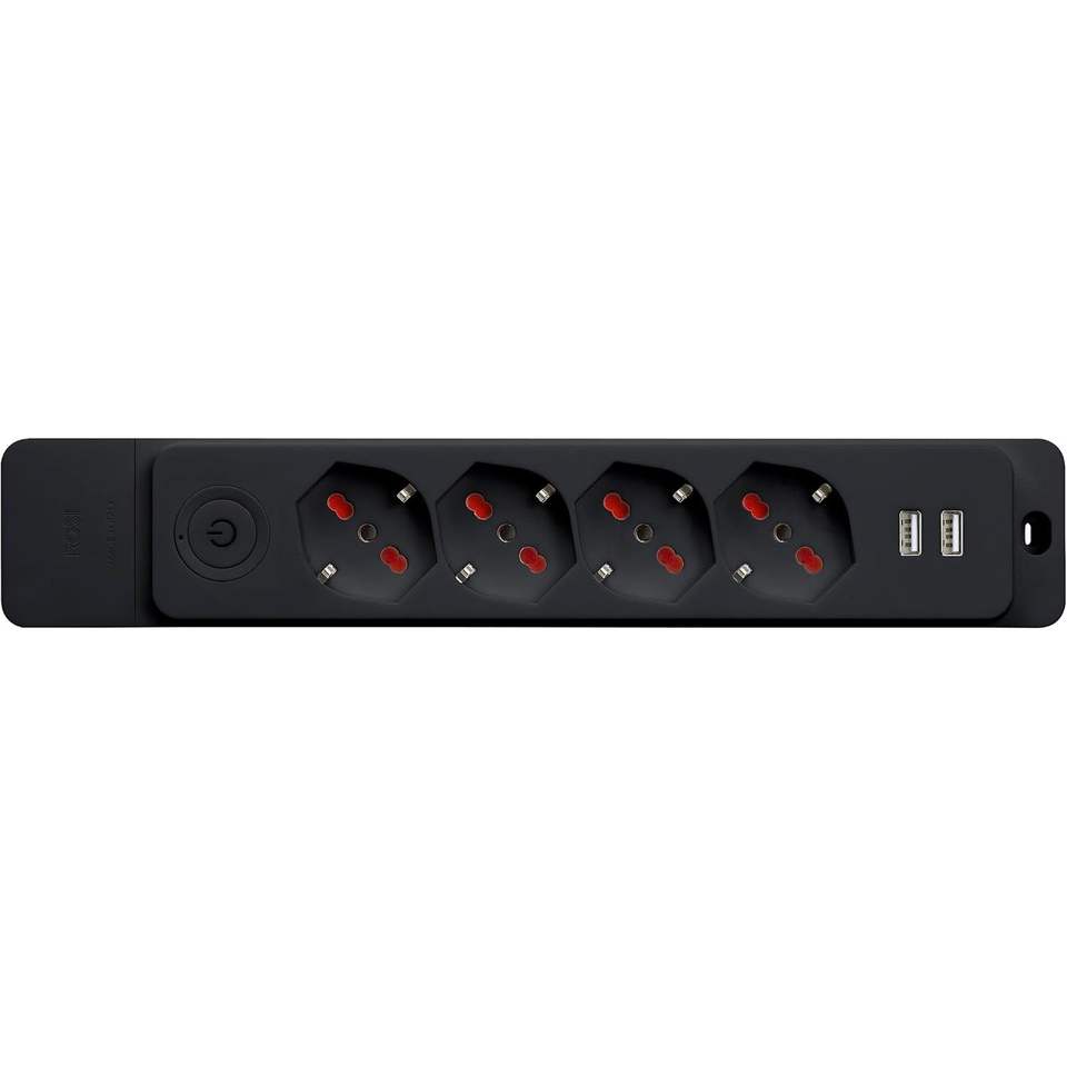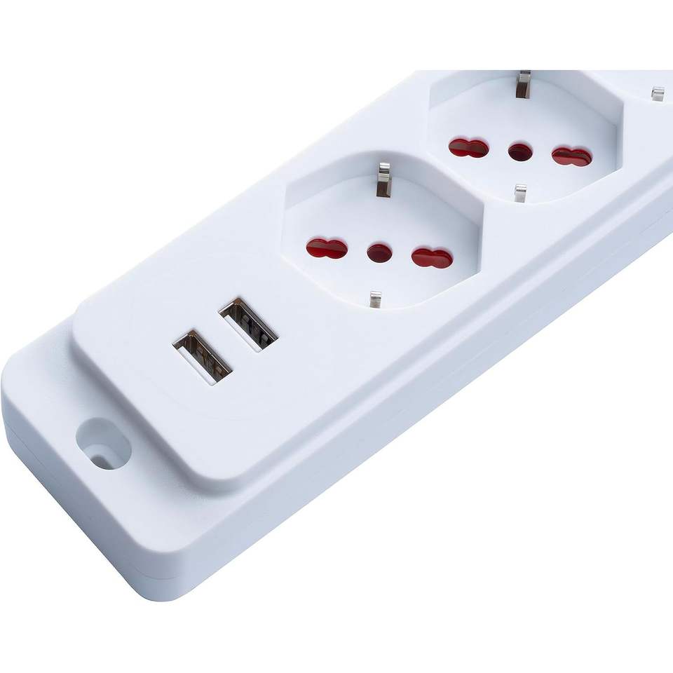 Multipresa Rosi a 4 Prese 230V con 2 Porte USB A, Presa di Sicurezza in Plastica IP20