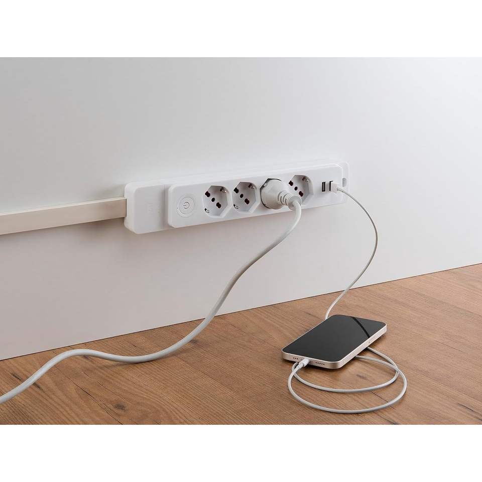 Multipresa a 4 Prese Schuko 230V con Messa a Terra Standard, Prolunga in Plastica con Funzione di Sicurezza