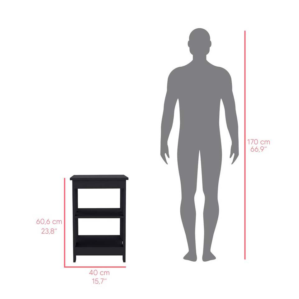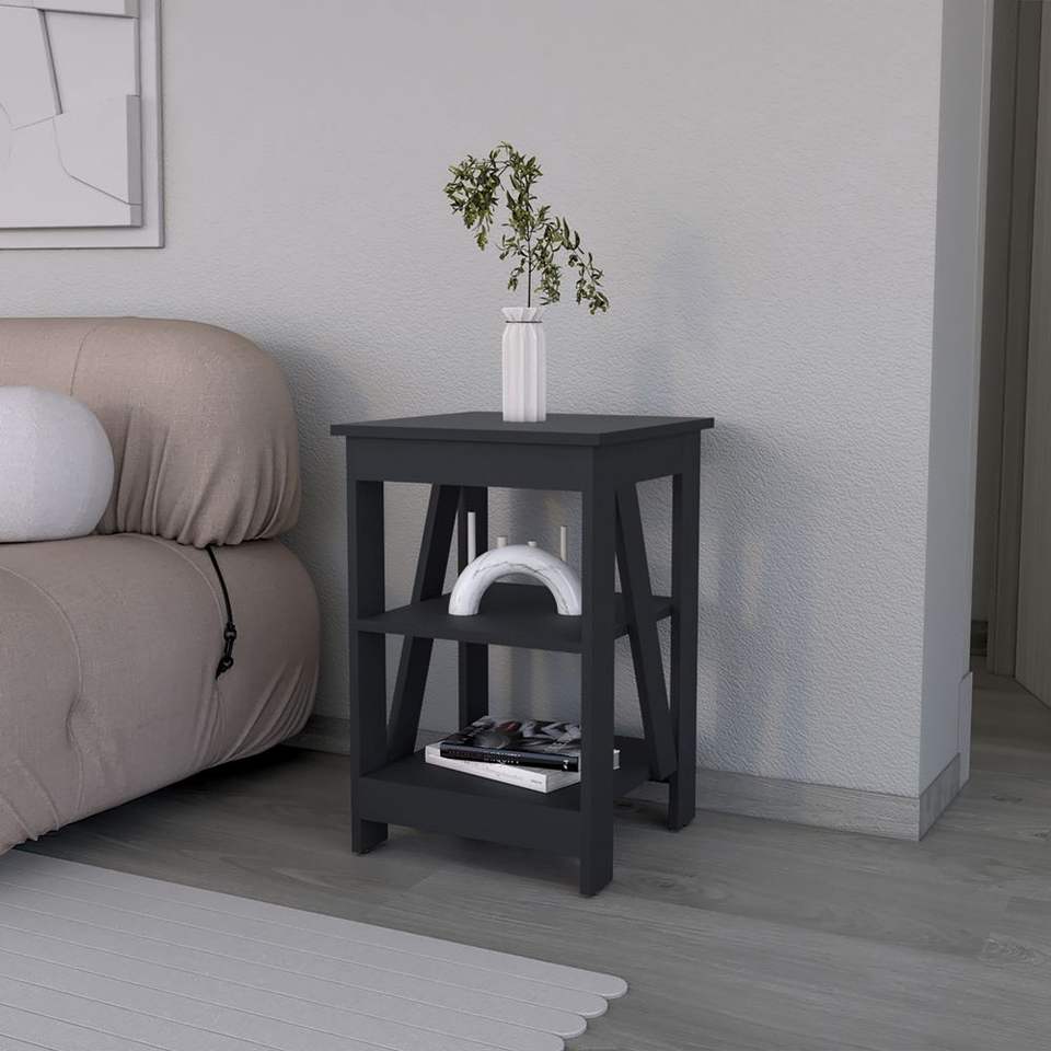 Tavolino Nero Rossville per Soggiorno, Elegante Comodino