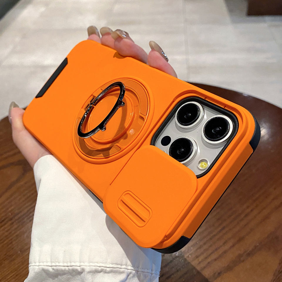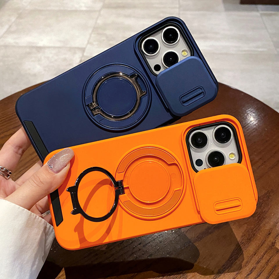 Custodia Magnetica per Telefono con Supporto Girevole e Protezione Fotocamera Scorrevole per iPhone 17 16 15 14 13 12 11 Pro Max Air, Cover Protettiva Doppia Armatura