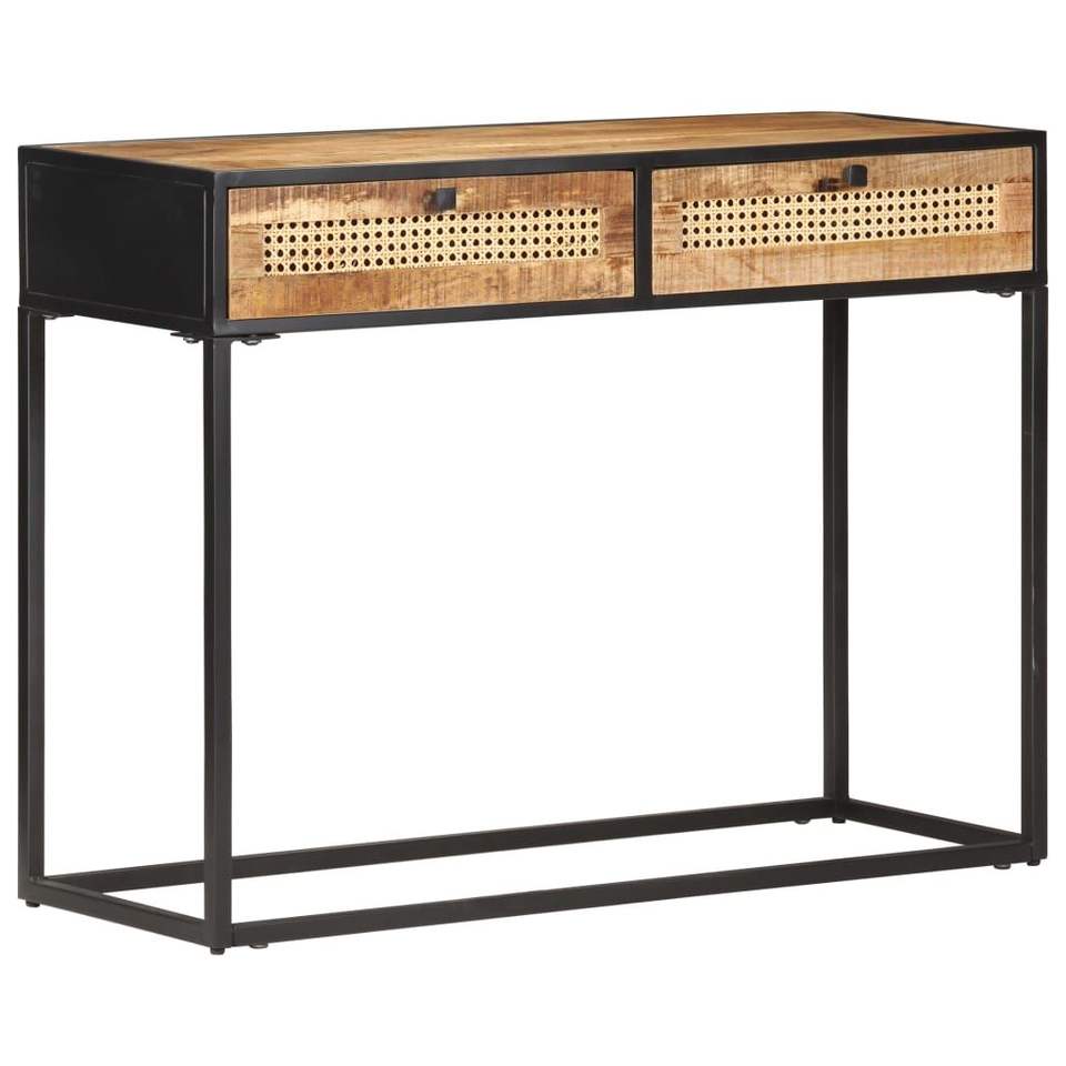 Rough Mango Wood and Natural Cane Console Table 39.4"x13.8"x29.5"