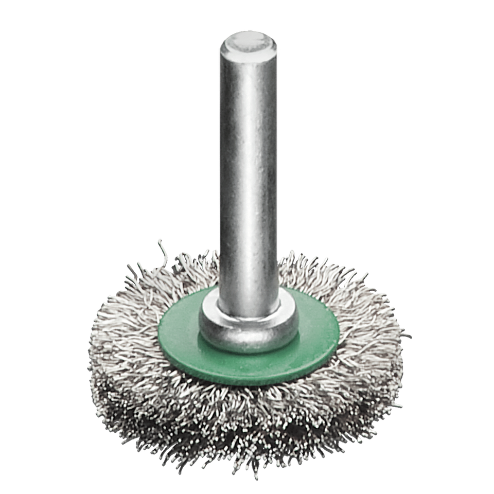 Spazzole rotonde SRB con albero di 6 x 30 mm, diametro 30 x 6 mm, filo d'acciaio inossidabile ROF, ondulato 0.20 mm, altezza del