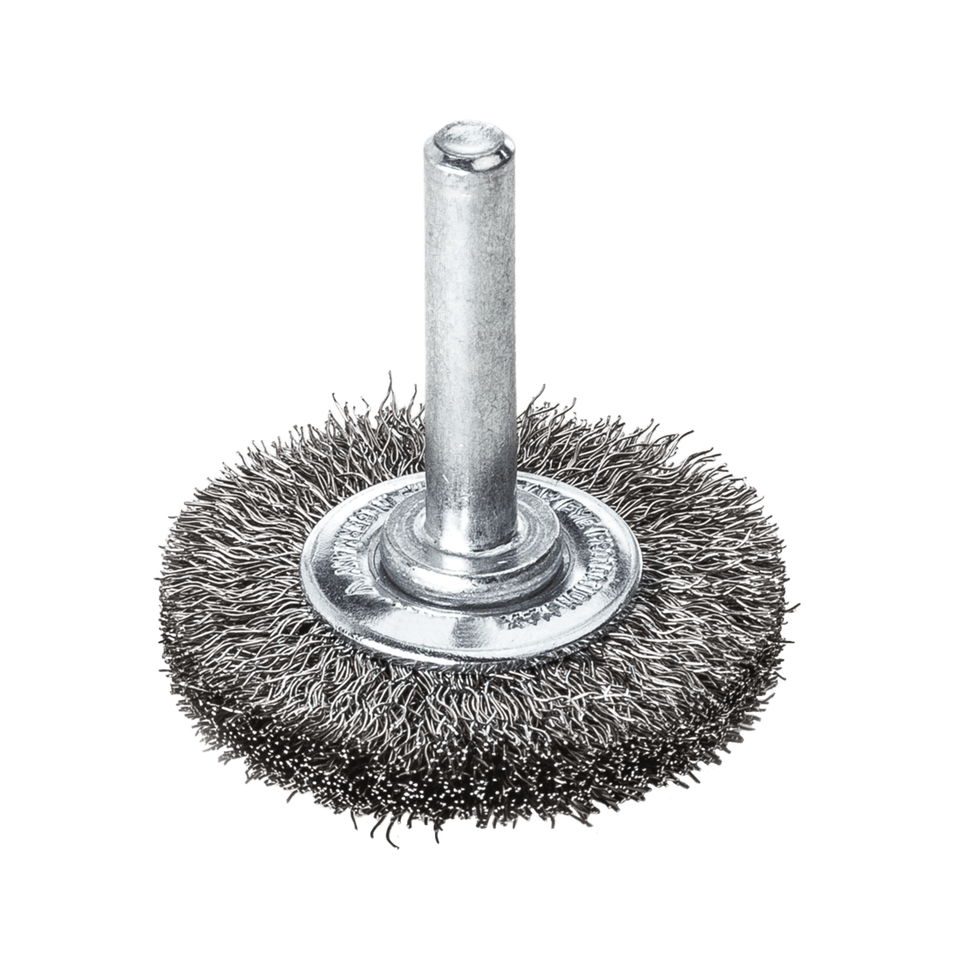 Spazzole rotonde SRB con gambo di 6 x 30 mm, diametro 30 x 6 mm, filo d'acciaio STA ondulato di 0.30 mm, altezza delle setole 6
