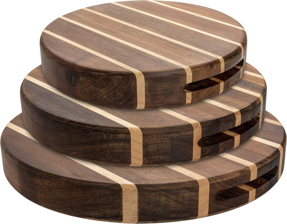Set di Taglieri Rotondi in Acacia Carbonizzata, Ecologici e Sostenibili con Manico per Tagliare Carne e Verdure