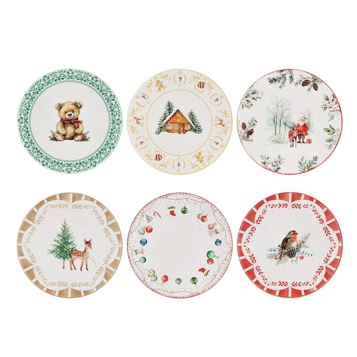 Sottopentola Rotondo in Ceramica Decorato con Sciatori, Set da Tavola Natalizio