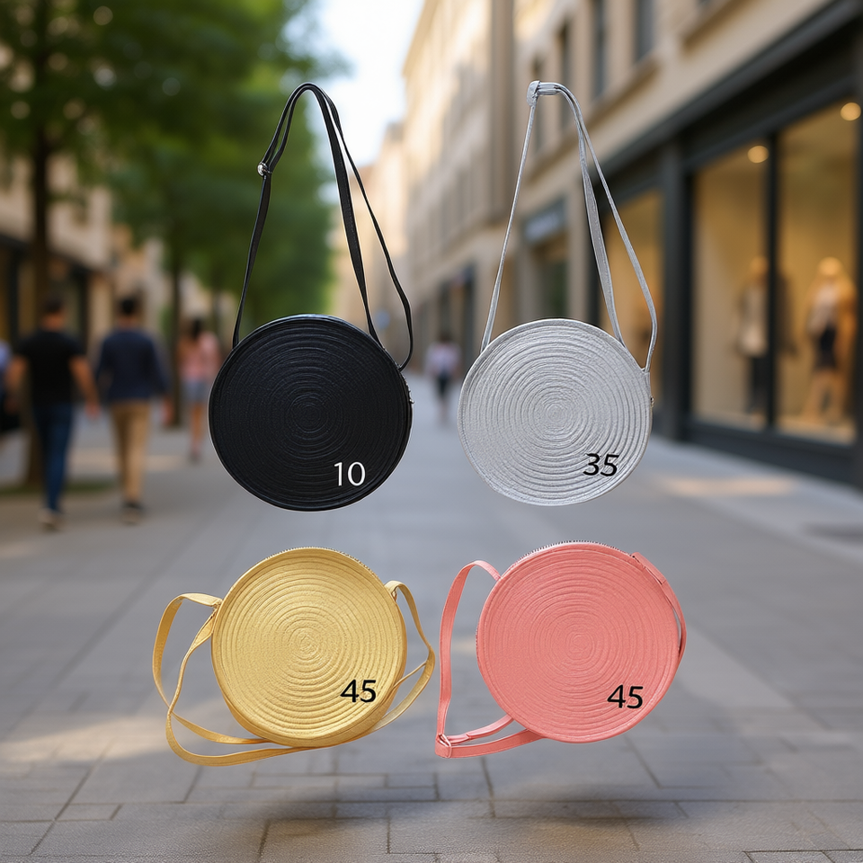 Round Crossbody Bag 25x10cm With Gold Silver Thread For Women Fashion Accessory