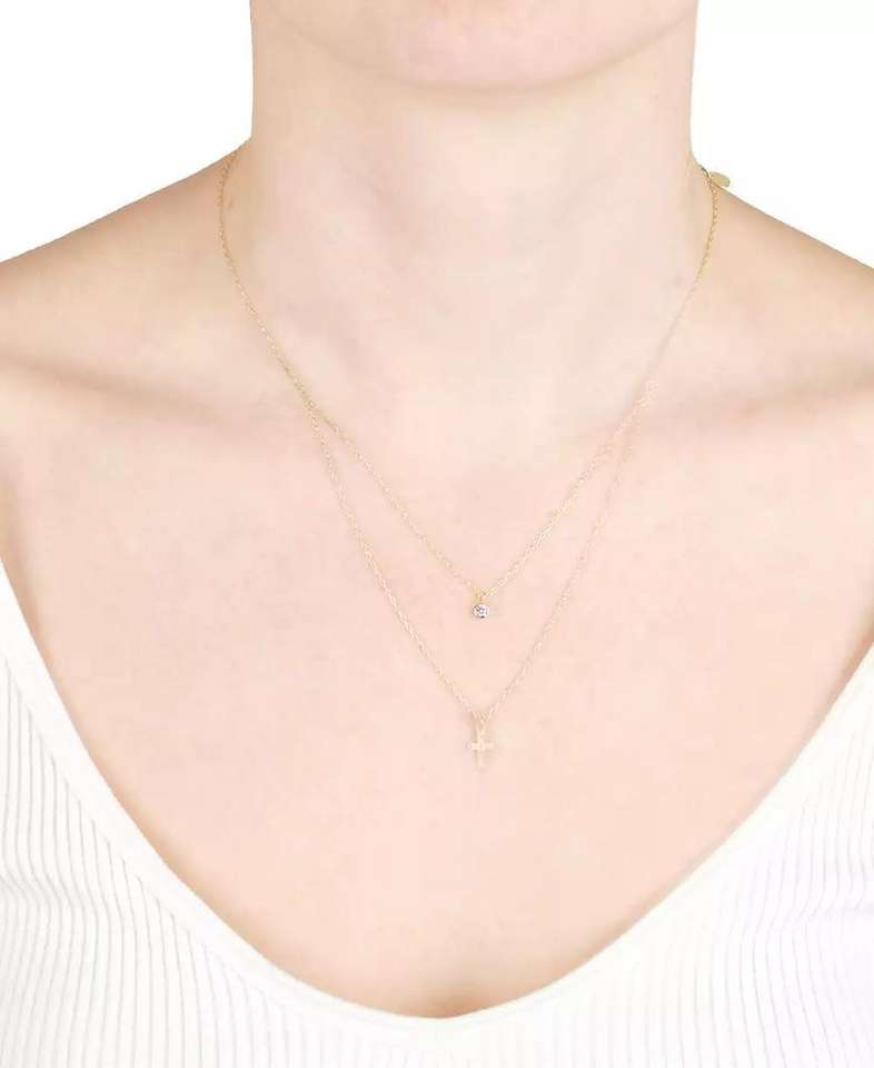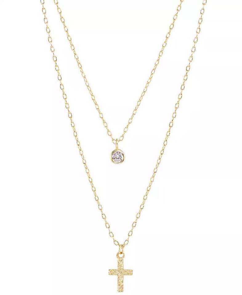Collana rotonda con zirconi cubici e croce a due file, estensore 18 "+ 2" | Macacy's